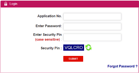 - Admit Card Download पेज आपको नीचे दिए स्क्रीन शाट की तरह दिखाई देगा। इसमें अपना Application number और Password तथा Captcha डाल के सबमिट कर देना है।